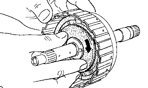 7. Remove piston from high clutch drum by turning it.