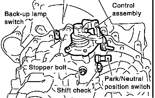 3. After removing shift check and stopper bolt, remove control assembly.