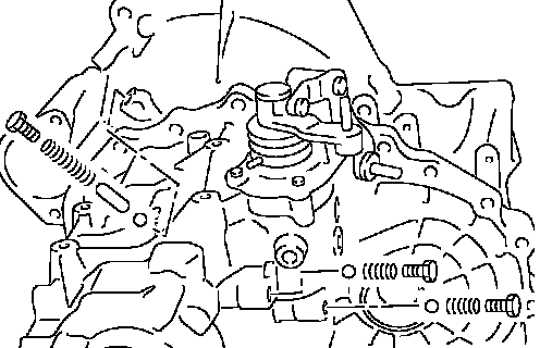 13. With shift lever in 5th position, remove bracket bolts from reverse lever assembly. Lift reverse lever assembly to remove.