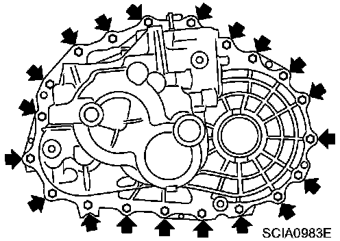 5. Remove transaxle case fixing bolts.
