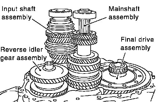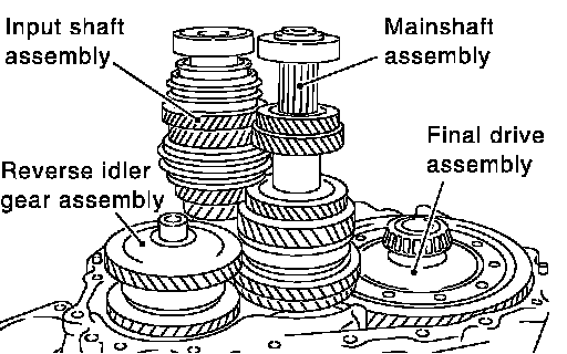 8. Install input shaft assembly, mainshaft assembly, and reverse idler gear assembly into clutch housing.