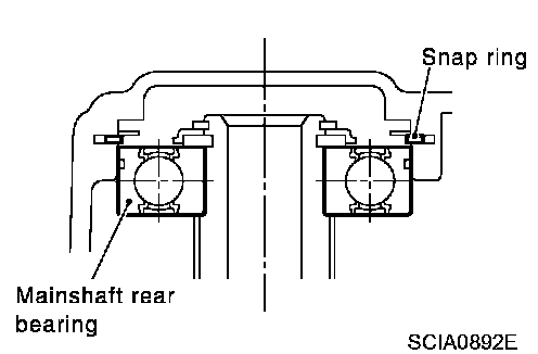 h. Securely install snap ring onto mainshaft rear bearing.