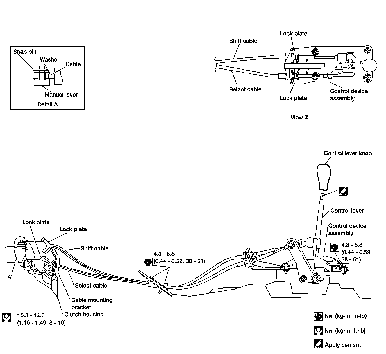 ^ Note that the select side lock plate for securing the control cable is different from the one on the shift side.