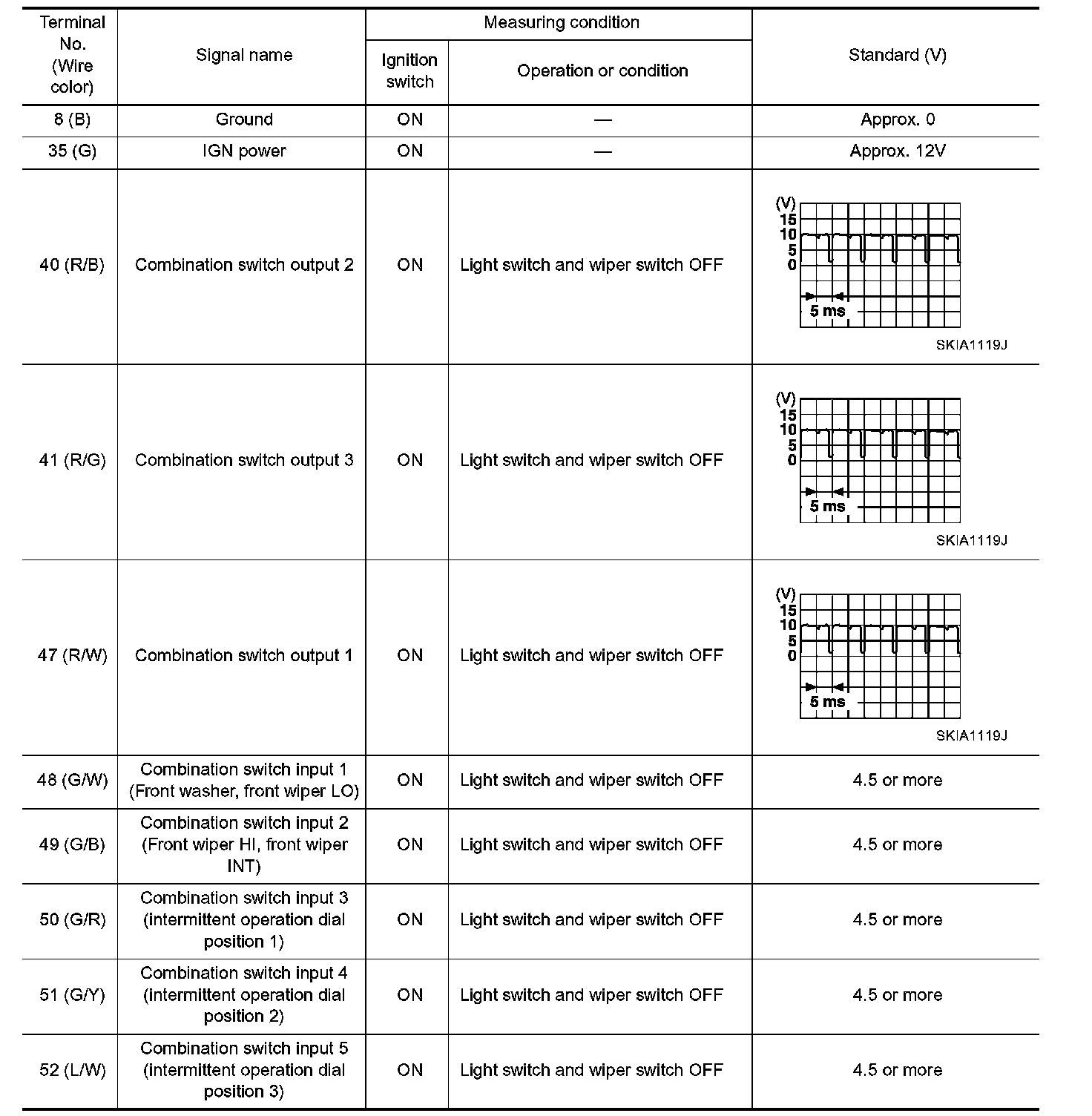 Pinout Values and Diagnostic Parameters