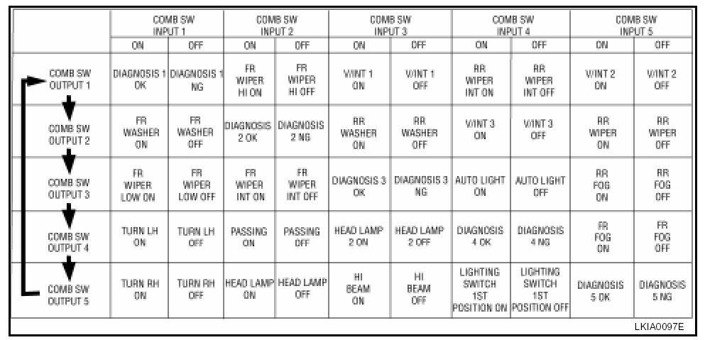 BCM reads operation status of combination switch using combinations shown in table.