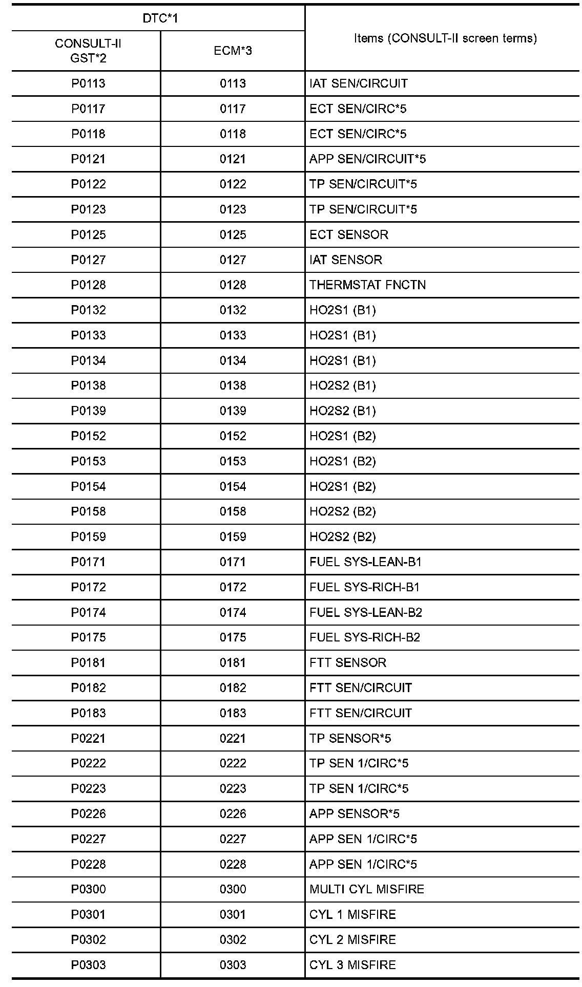 DTC No. Index (P0113 - P0303):