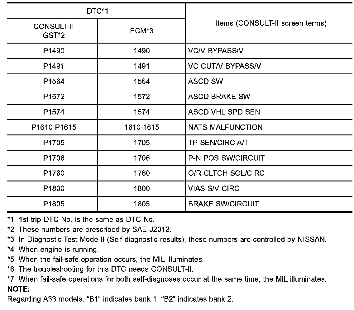 DTC No. Index (P1490 - P1805):