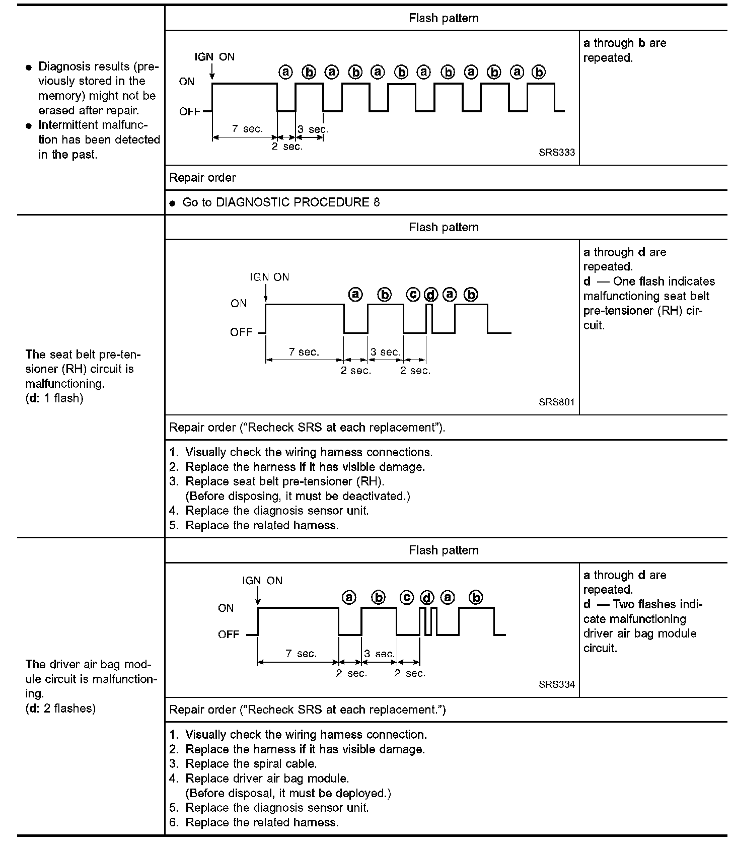Air Bag Warning Lamp Flash Code (Diagnosis Mode) Part 3: