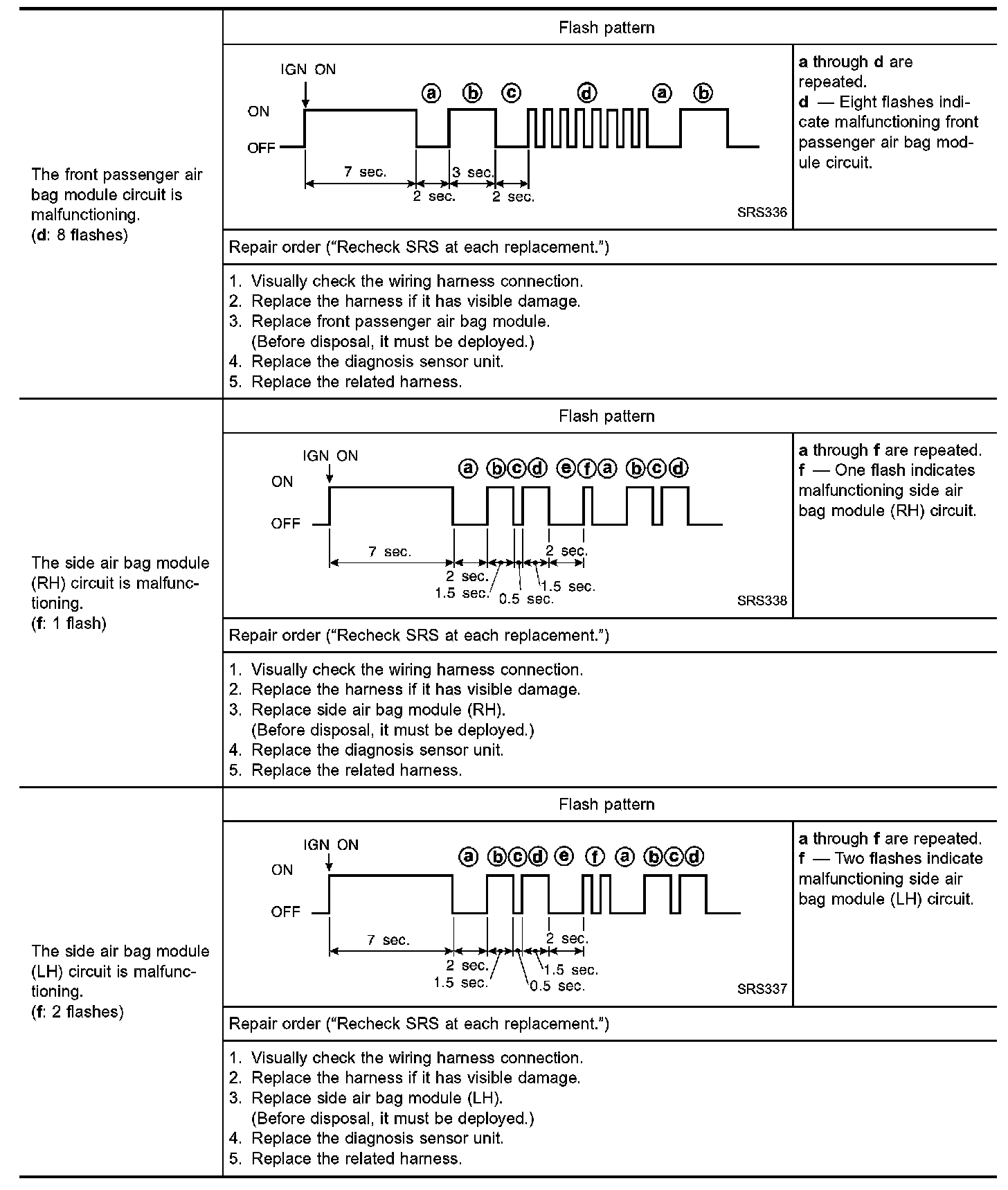 Air Bag Warning Lamp Flash Code (Diagnosis Mode) Part 4: