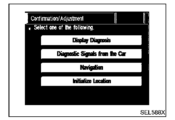 This procedure is for initializing the current location. Perform "Initialize Location" when the vehicle is transported a long distance by trailer, etc.Map with grey background appears and the vehicle location cannot be adjusted by scrolling the display when the vehicle location in the memory is out of the area of the inserted map data. Perform "Initialize Location" when this occurs.