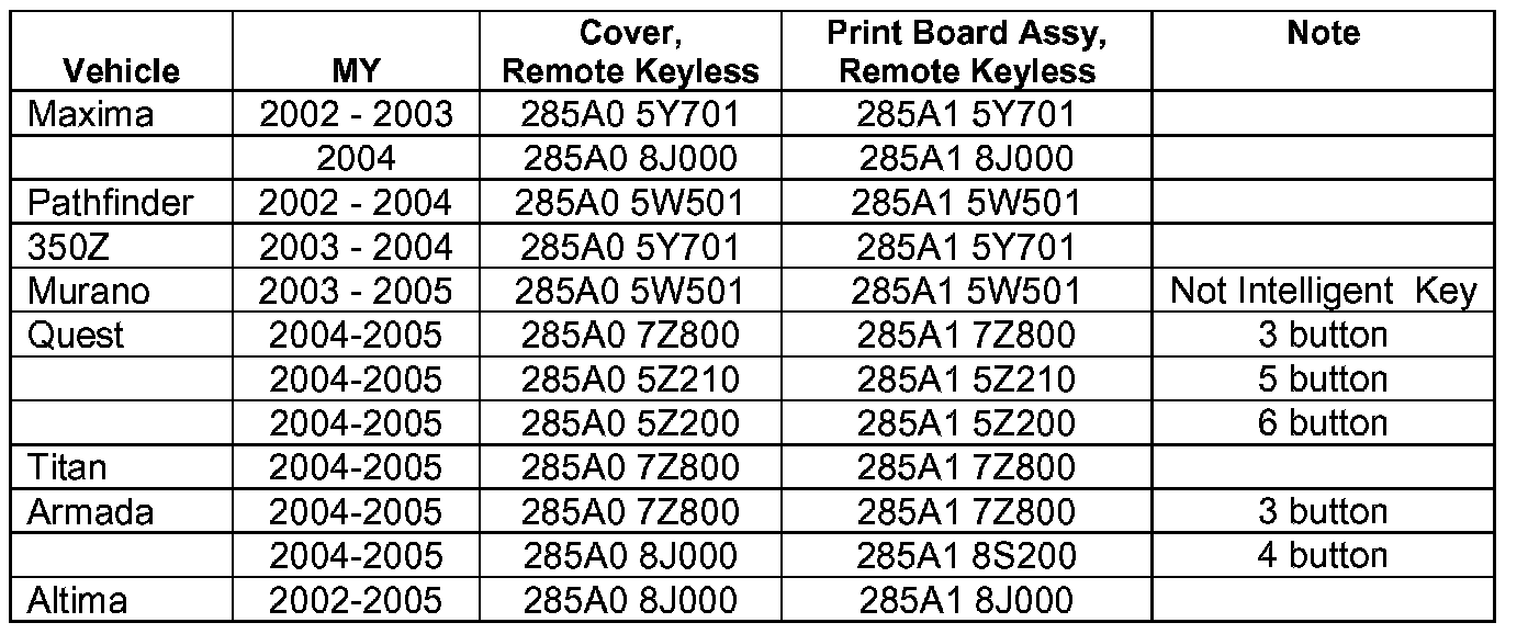 REMOTE KEYLESS ENTRY REPLACEMENT PARTS