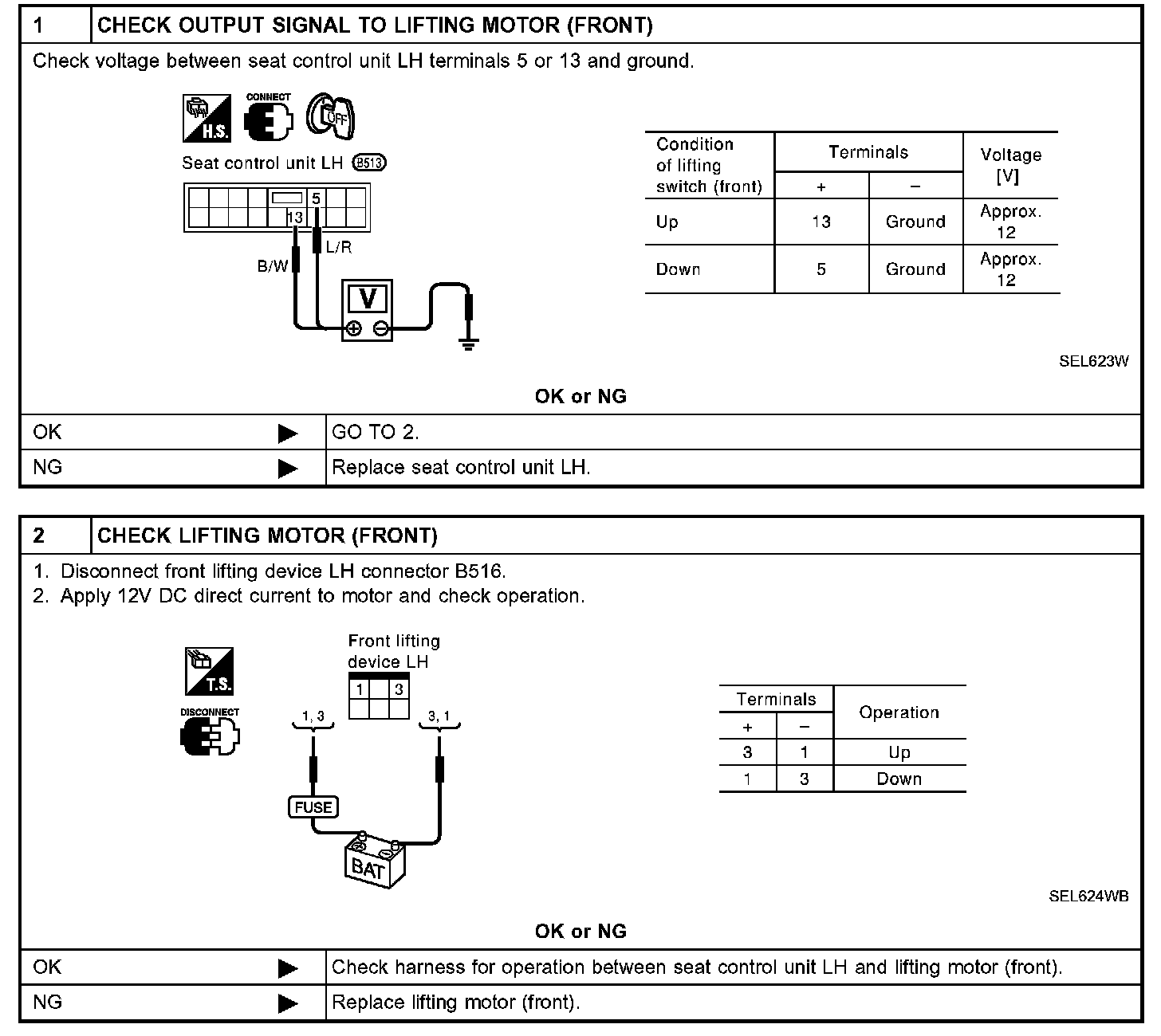 Step 1 - 2 [Lifting motor (front) check]:
