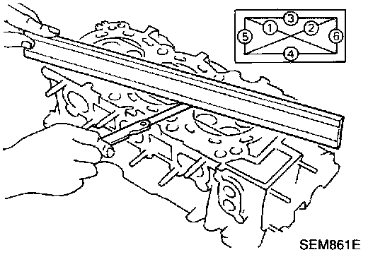 Use a reliable straightedge and feeler gauge to check the flatness of cylinder head surface.