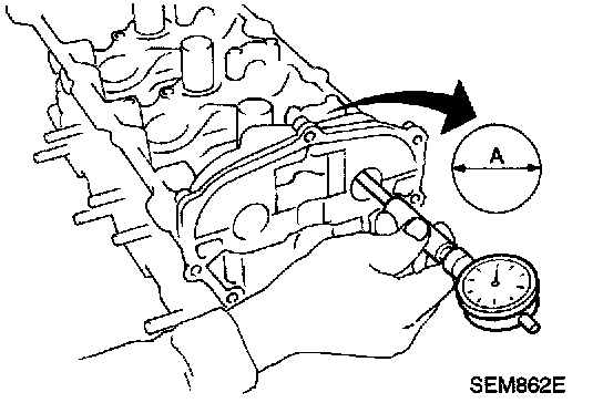 2. Measure inner diameter "A" of camshaft bearing. Standard inner diameter: