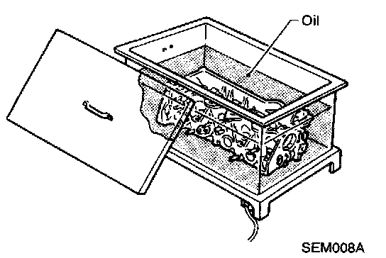 3. Heat cylinder head to 110 to 130°C (230 to 266°F) by soaking in heated oil.
