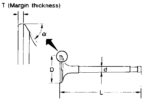 When valve head has been worn down to 0.5 mm (0.020 inch) in margin thickness, replace valve.