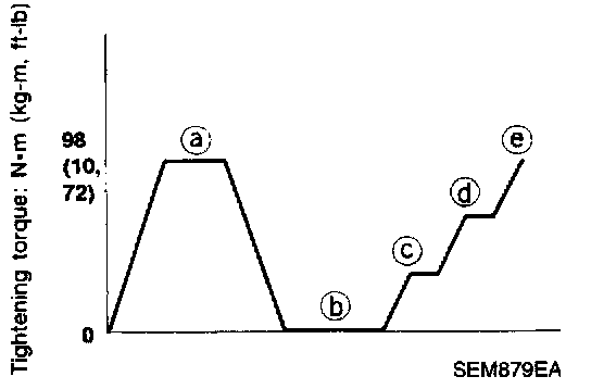 a. Tighten all bolts to 98 Nm (10 kg-m, 72 ft. lbs.).