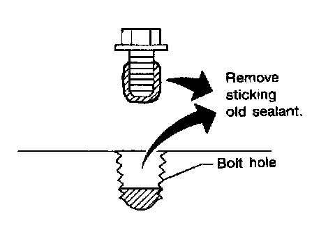 ^ Remove old liquid gasket from the bolt hole and thread.