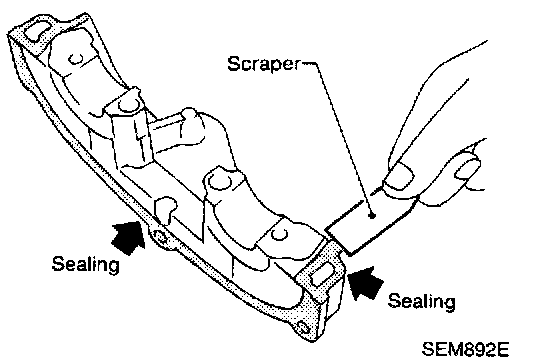 2. Before installing cam bracket, remove old liquid gasket from mating surface using a scraper.