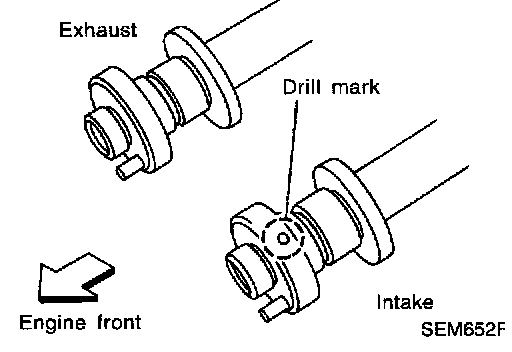 ^ Intake camshaft has a drill mark on camshaft sprocket mounting flange. Install it on the intake side.