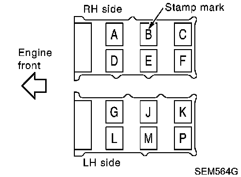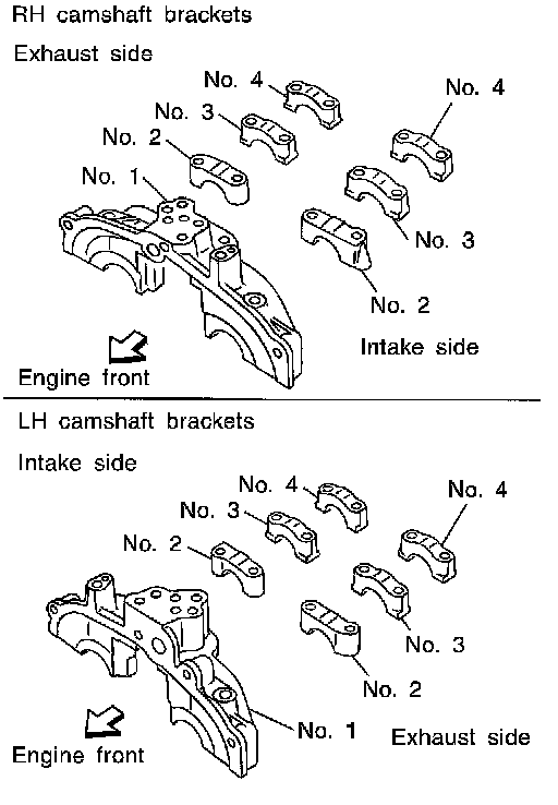 ^ Install camshaft brackets in their original positions. Align stamp mark as shown in the figure.