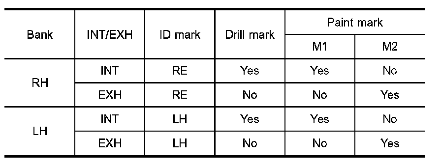 ^ Identification marks are present on camshafts.