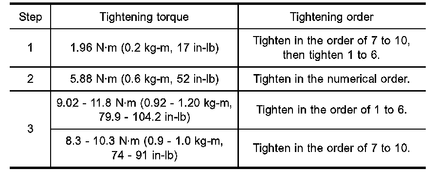 a. Tighten bolts in numerical order shown in the figure with smaller torque than specified.