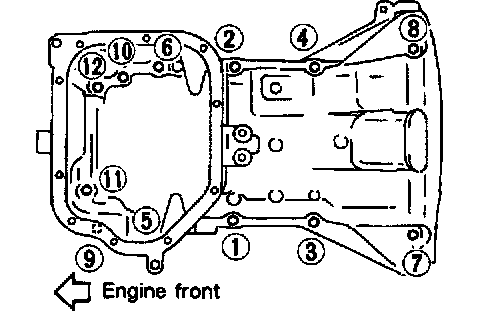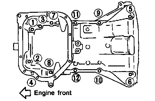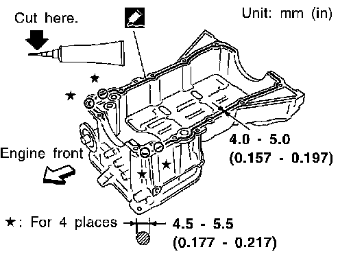 b. Apply a continuous bead of liquid gasket to mating surface of steel oil pan.