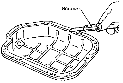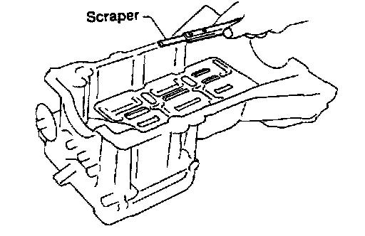 a. Use a scraper to remove old liquid gasket from mating surfaces. Also remove old liquid gasket from mating surface of aluminum oil pan.