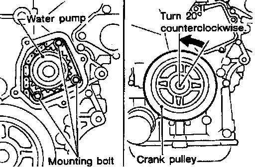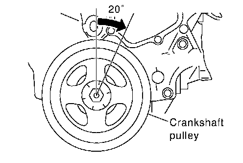 5. Return the crankshaft pulley to its original position by turning it 20° forward.