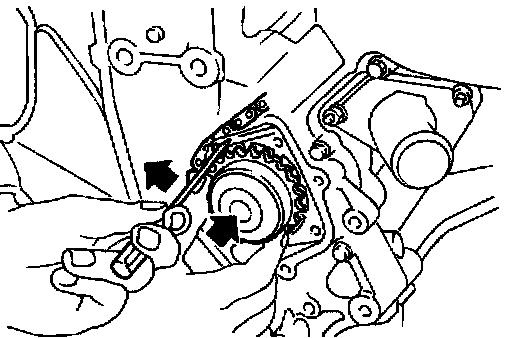10. Turn crankshaft pulley approximately 20° clockwise so that the timing chain on the chain tensioner side is loose.