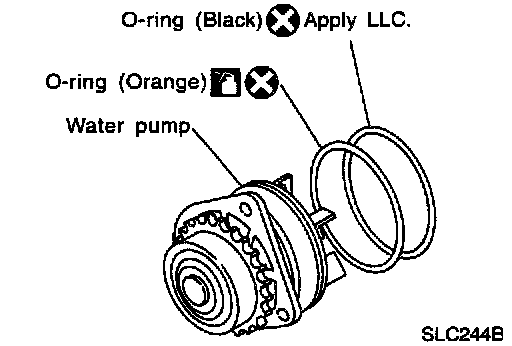 1. Apply engine oil and coolant to O-rings as shown in the figure.
