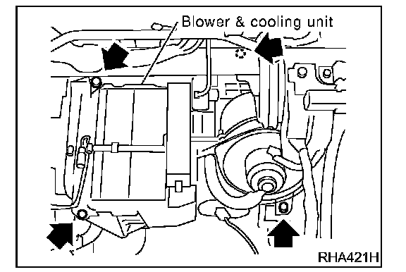 8. Separate the blower and cooling unit case, and remove the evaporator.