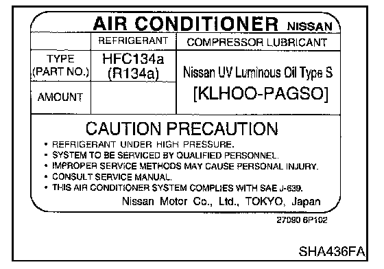 Leak detection dyes for R-134a and R12 A/C systems are different. Do not use R-134a leak detection dye in R-12 A/C system or R-12 leak detector dye in R-134a A/C systems or A/C system damage may result.
