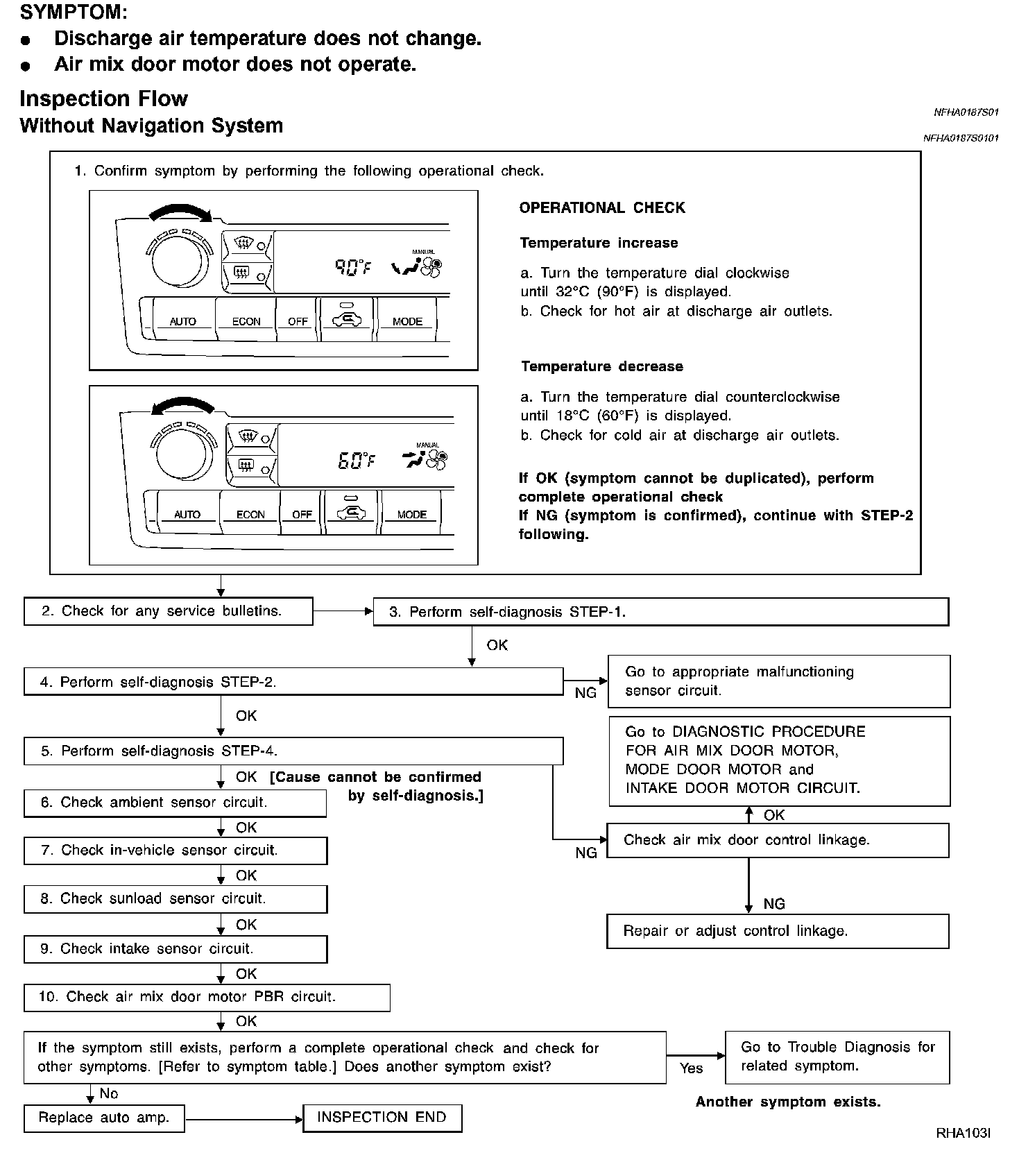 5. Make sure air mix door operates properly when changing from code No. 41 to 46 by pushing DEF switch.