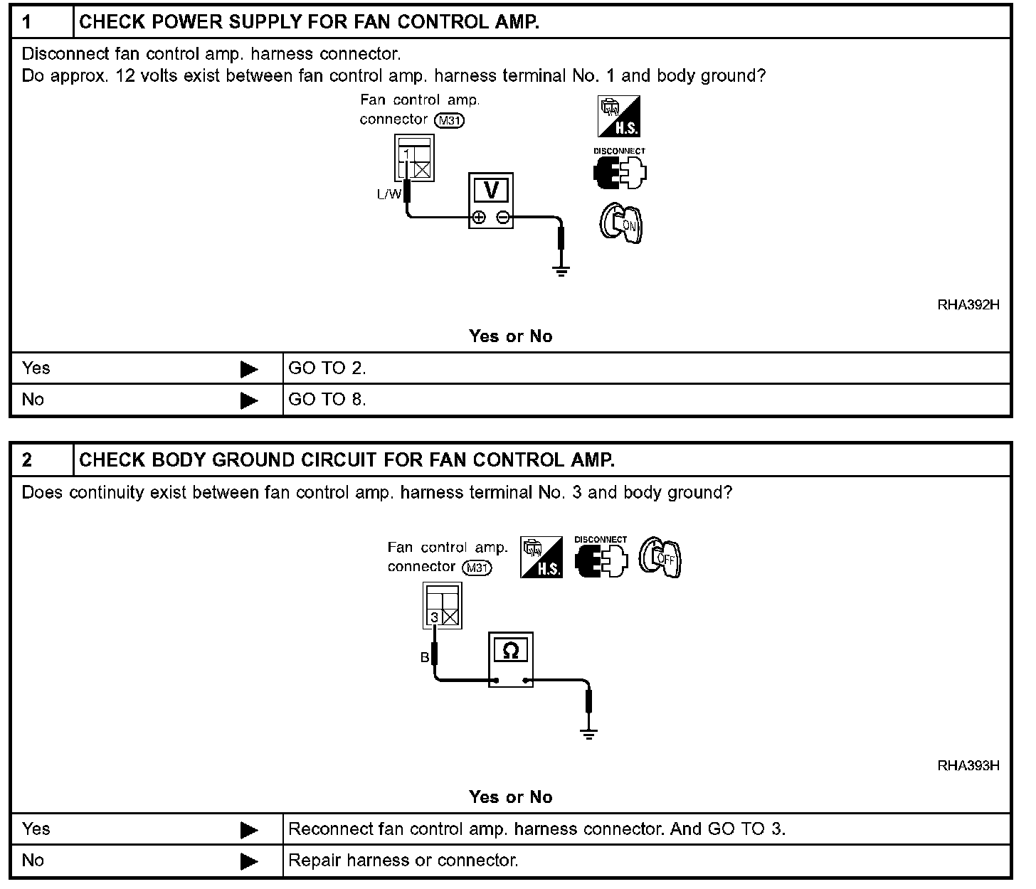 The control blower speed (in the range of 5 to 12 V), the automatic amplifier supplies a gate voltage to the fan control amplifier. Based on this voltage, the fan control amplifier controls the voltage supplied to the blower motor.