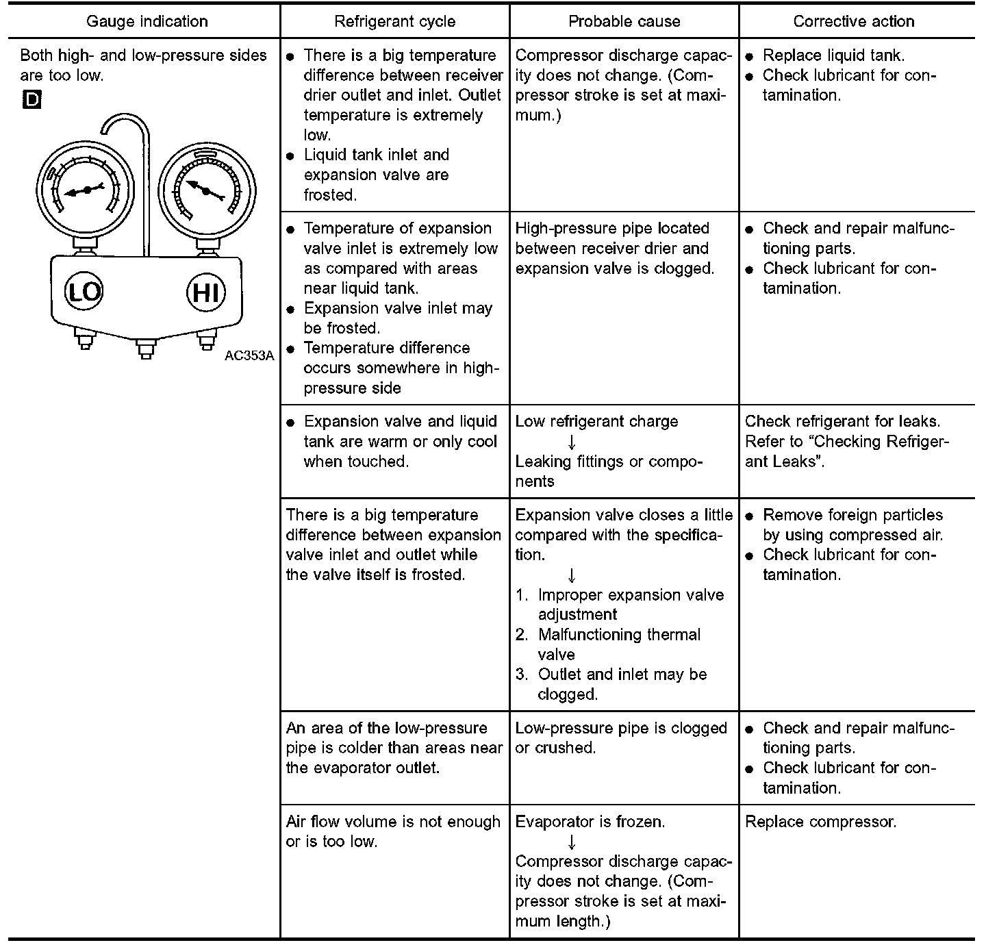 * Automatic Air Conditioning System *Both High- And Low-pressure Sides Are Too Low: