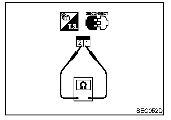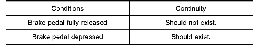 2. Check continuity between stop lamp switch terminals 1 and 2 under the given conditions.