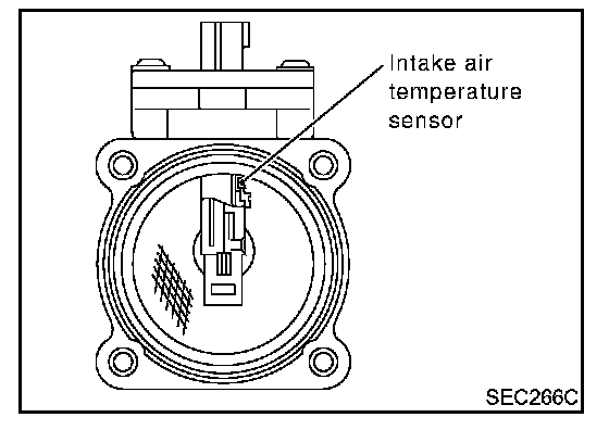 The mass air flow sensor is placed in the stream of intake air. It measures the intake flow rate by measuring a part of the entire intake flow. It consists of a hot film that is supplied with electric current from the ECM. The temperature of the hot film is controlled by the ECM a certain amount. The heat generated by the hot film is reduced as the intake air flows around it. The more air, the greater the heat loss.