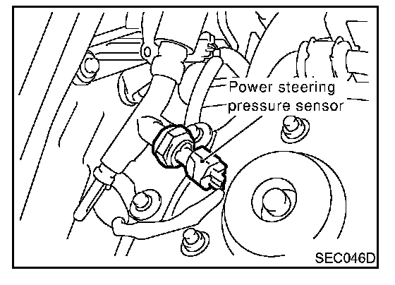 Power steering pressure (PSP) sensor is installed to the power steering high-pressure tube and detects a power steering load. This sensor is a potentiometer which transforms the power steering load into output voltage, and emits the voltage signal to the ECM. The ECM controls the ETC actuator and adjusts the throttle valve opening angle to increase the engine speed and adjusts the idle speed for the increased load.