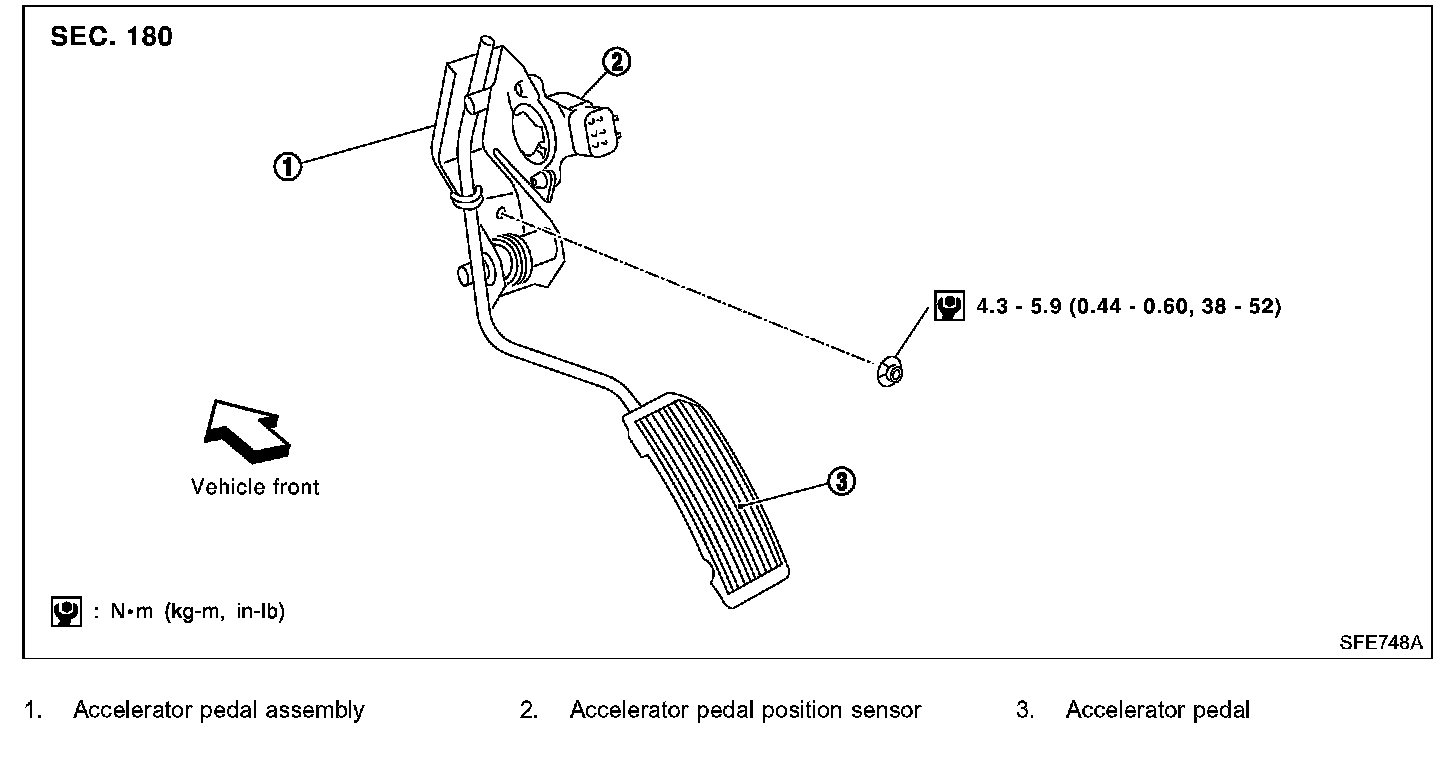 - Do not disassemble accelerator pedal or remove/install accelerator pedal position sensor.