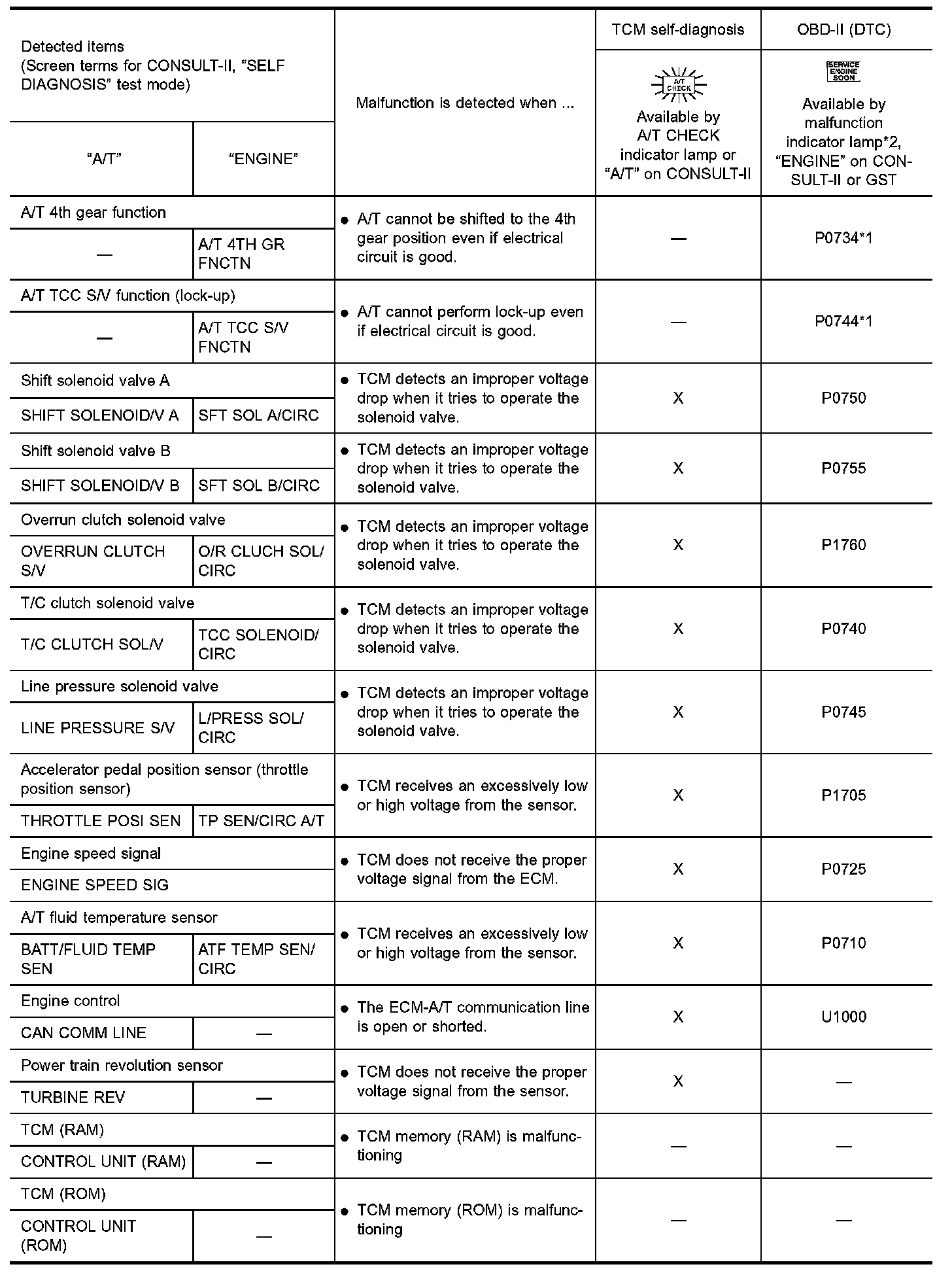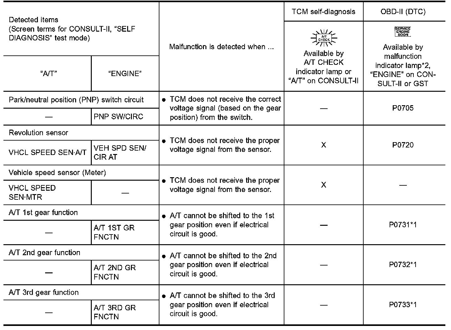 2. Shift schedule (which implies gear position) displayed on CONSULT-II may differ slightly. This occurs because of the following reasons: