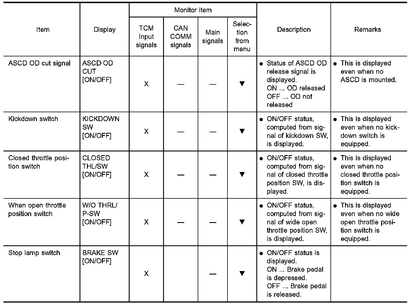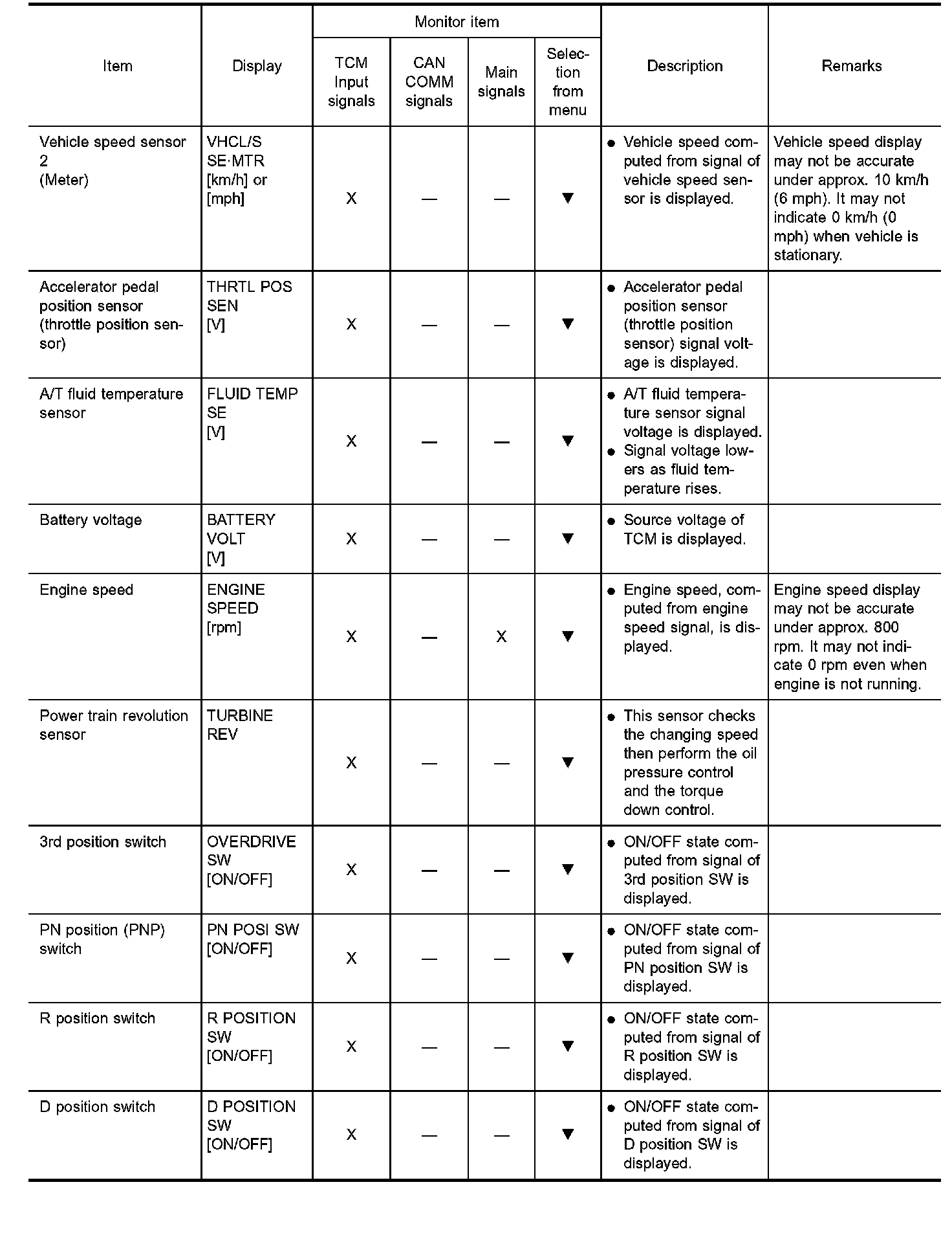 - Shift schedule indicated refers to the point where shifts start, and Gear position displayed on CONSULT-II indicates the point where shifts are completed.