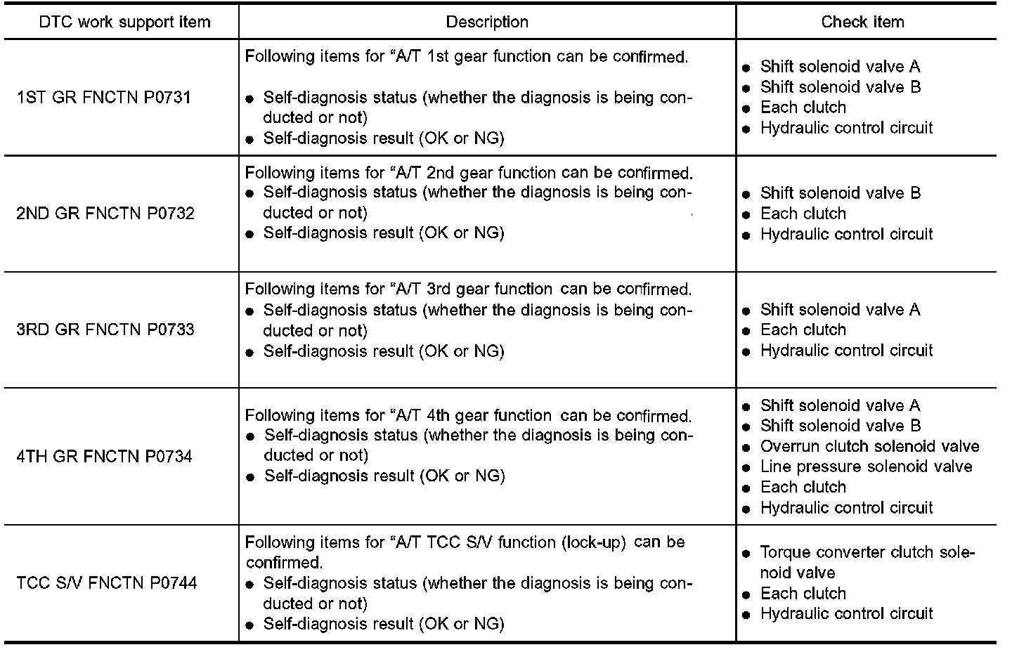 DTC WORK SUPPORT MODE