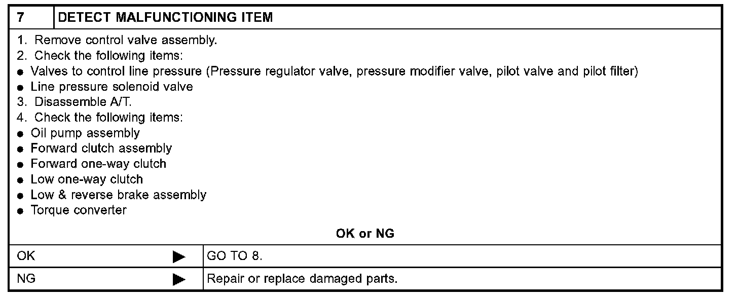 7. Vehicle Does Not Creep Forward in D, 2nd or 1st PositionSYMPTOM: Vehicle does not creep forward when selecting D, 2nd or 1st position.