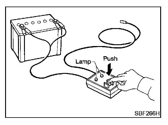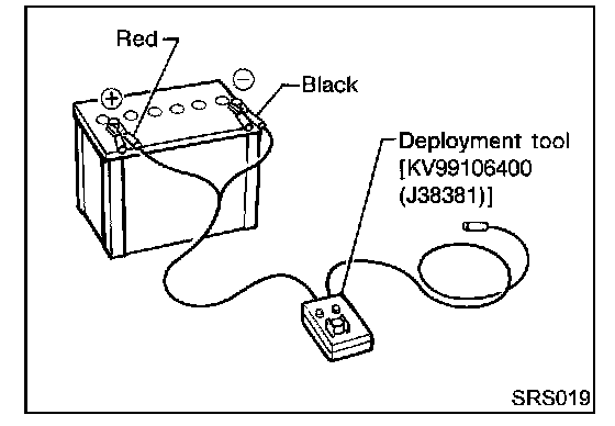 Press the deployment tool switch to the "ON" position. The left side lamp in the tool, marked "air bag connector voltage" should illuminate. If it does not illuminate, replace the tool.