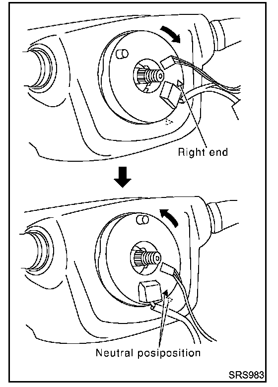 12. Turn steering wheel to the left end and then to the right end fully to make sure that spiral cable is set in the neutral position.