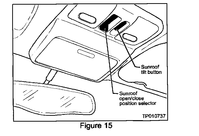 ^ Press and hold the sunroof "Tilt" button (see Figure 15) in the tilt down position for more than 1 second to re-set the sunroof memory.