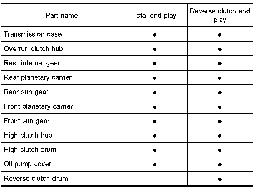 Adjustment (2)When any parts listed below are replaced, adjust total end play and reverse clutch end play.