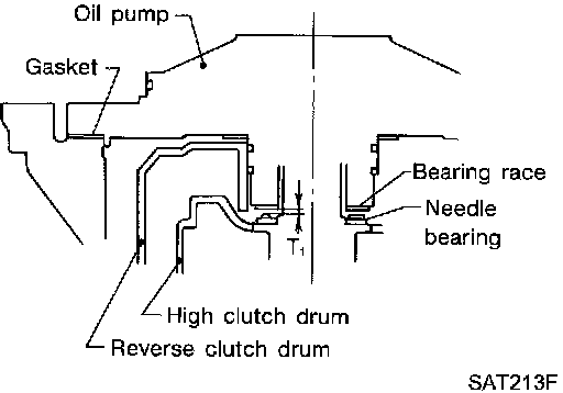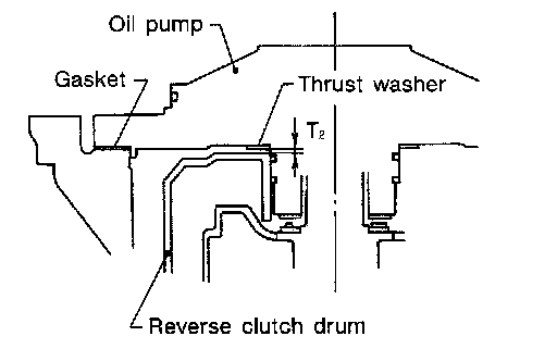 2. Adjust reverse clutch drum end play "T2".